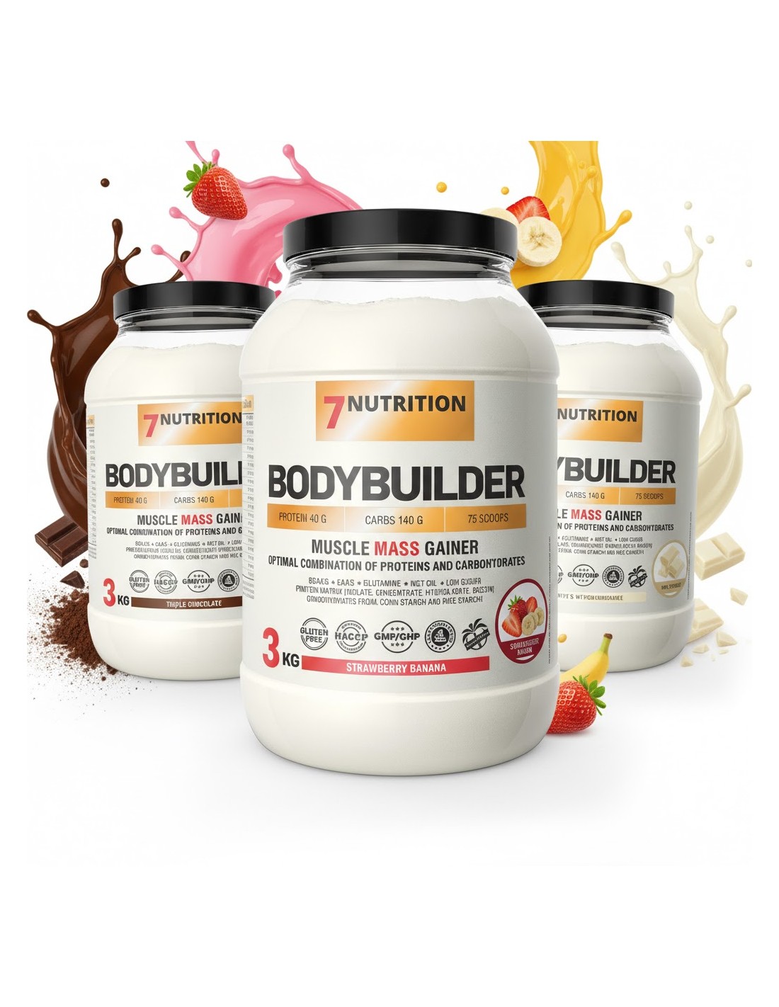 Bodybuilder 3 kg de 7Nutrition es una fórmula hipercalórica que combina fuentes de carbohidratos y proteínas de alta calidad, diseñada para deportistas que necesitan un mayor aporte energético.