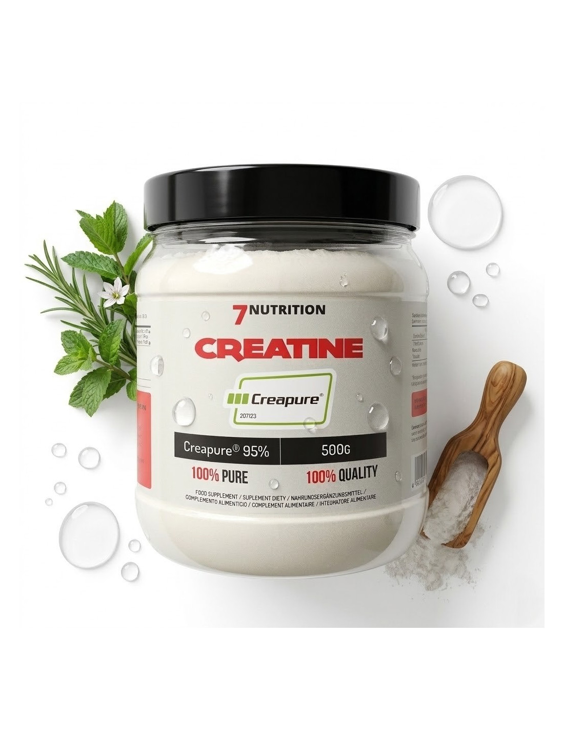 7Nutrition Creapure® 500 g es un complemento alimenticio a base de monohidrato de creatina micronizado Creapure®, considerado uno de los estándares de mayor pureza y calidad en el mercado europeo.
