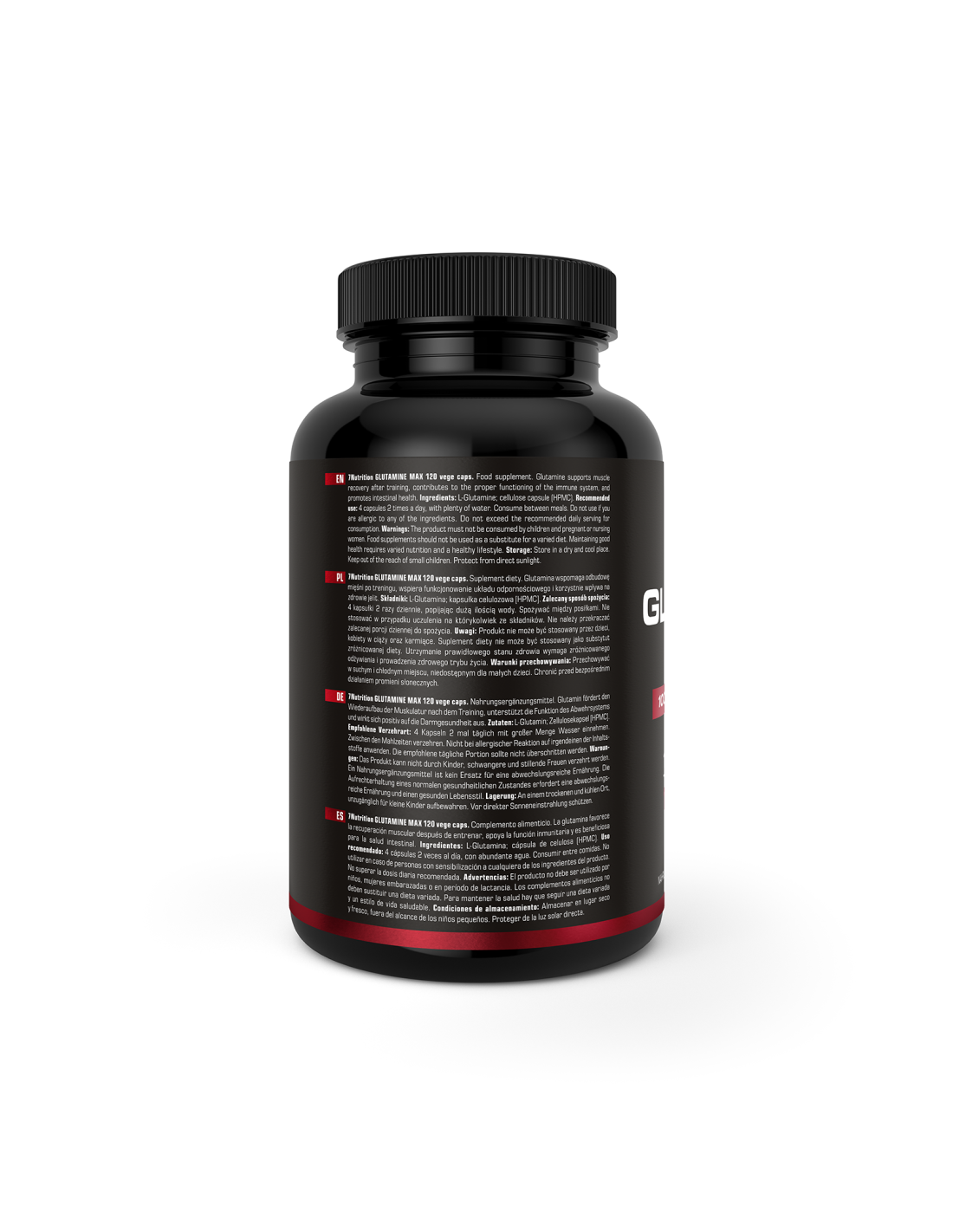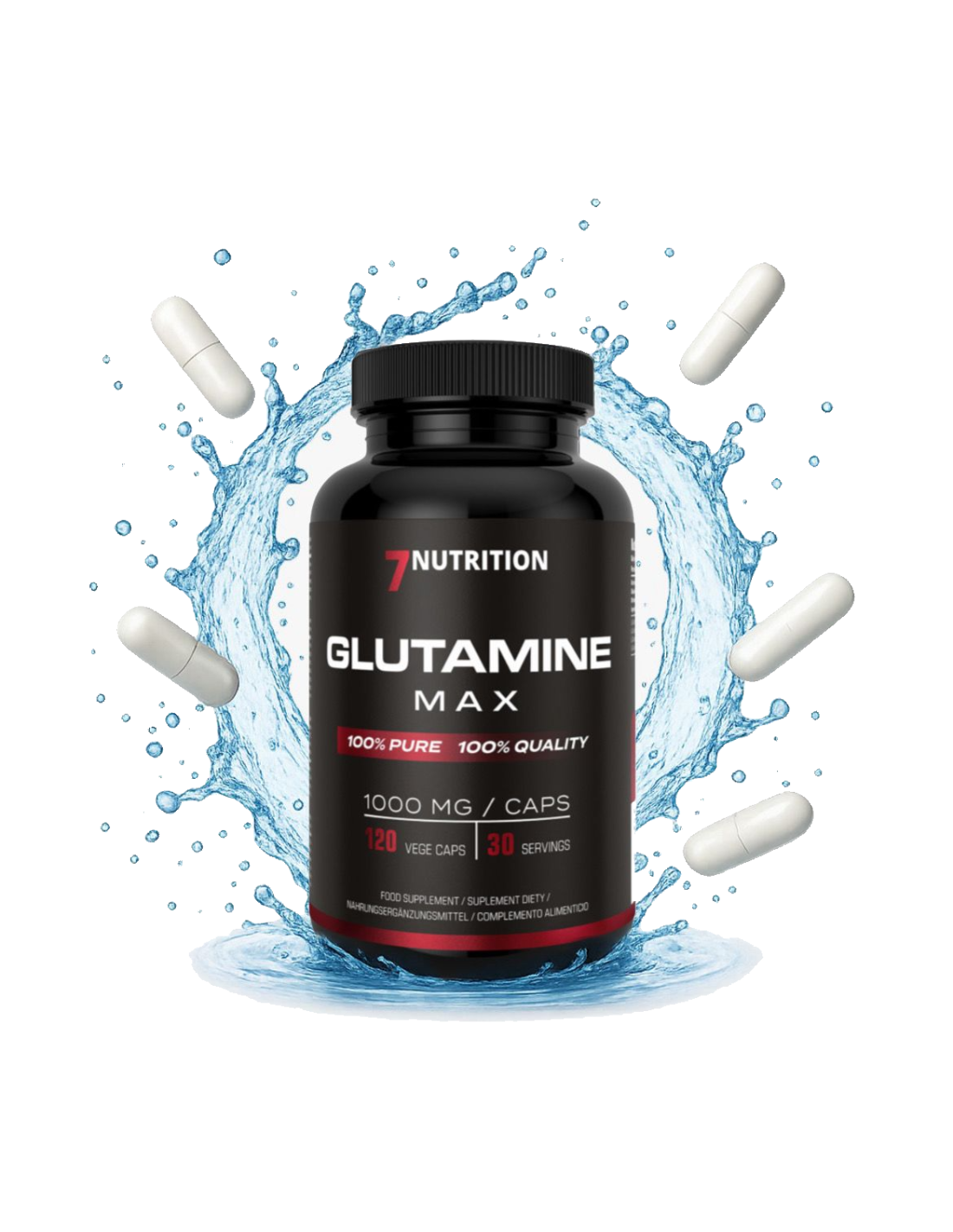 7Nutrition Glutamine Max es un suplemento avanzado de L-glutamina pura en cápsulas de celulosa vegetal, diseñado para apoyar la recuperación muscular, el sistema inmunológico y el equilibrio metabólico durante periodos de entrenamiento intenso o estrés físico.