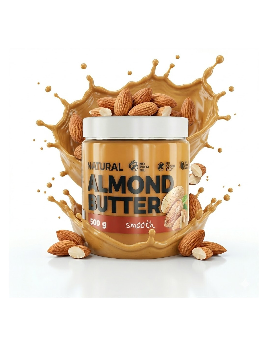 Almond Butter 500g de 7Nutrition es una mantequilla elaborada exclusivamente con almendras tostadas finamente molidas, sin azúcares añadidos, sin aceite de palma y sin conservantes.