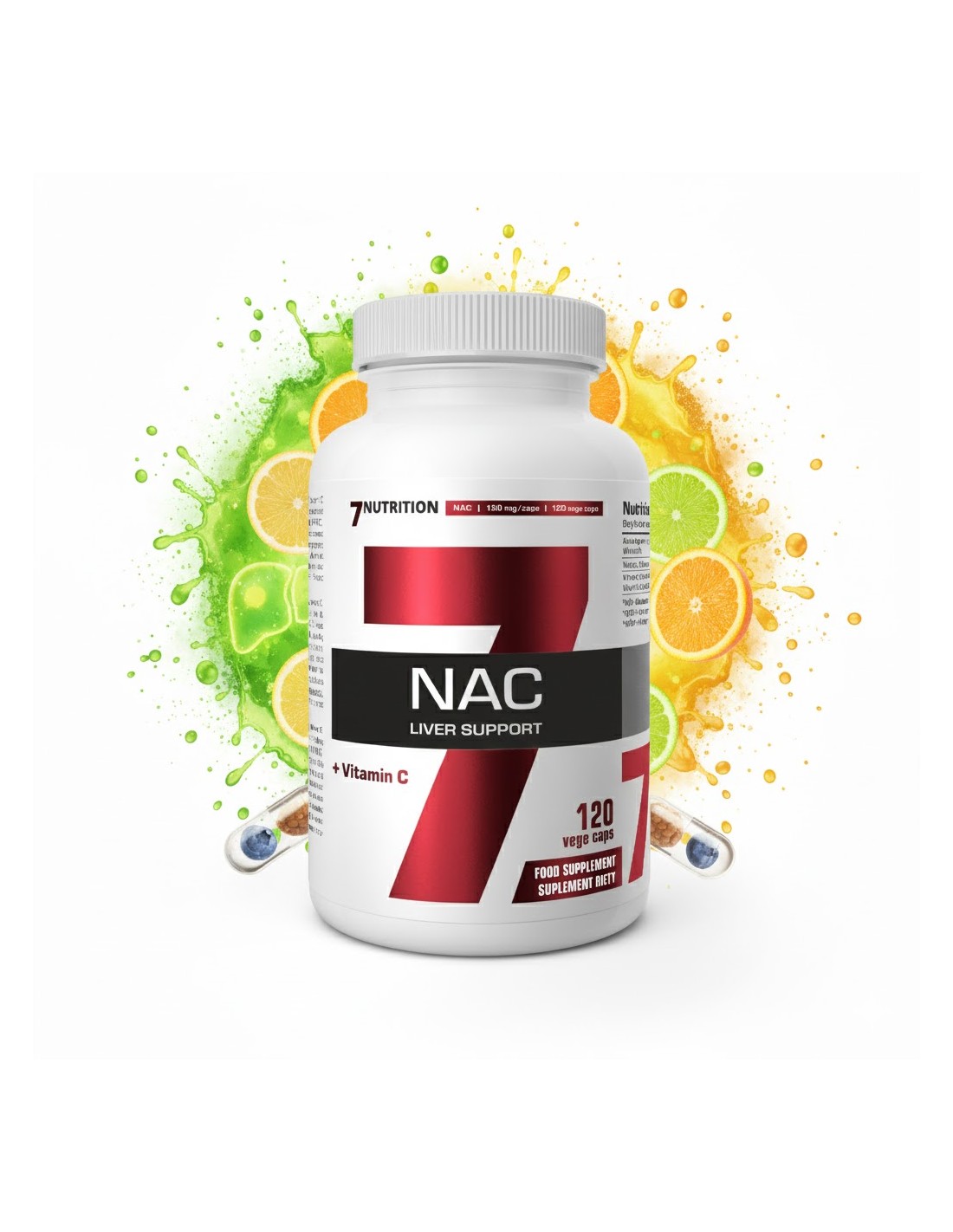 NAC + Vitamin C de 7Nutrition es una fórmula diseñada para apoyar el bienestar hepático, reducir el estrés oxidativo y favorecer la recuperación después del entrenamiento.