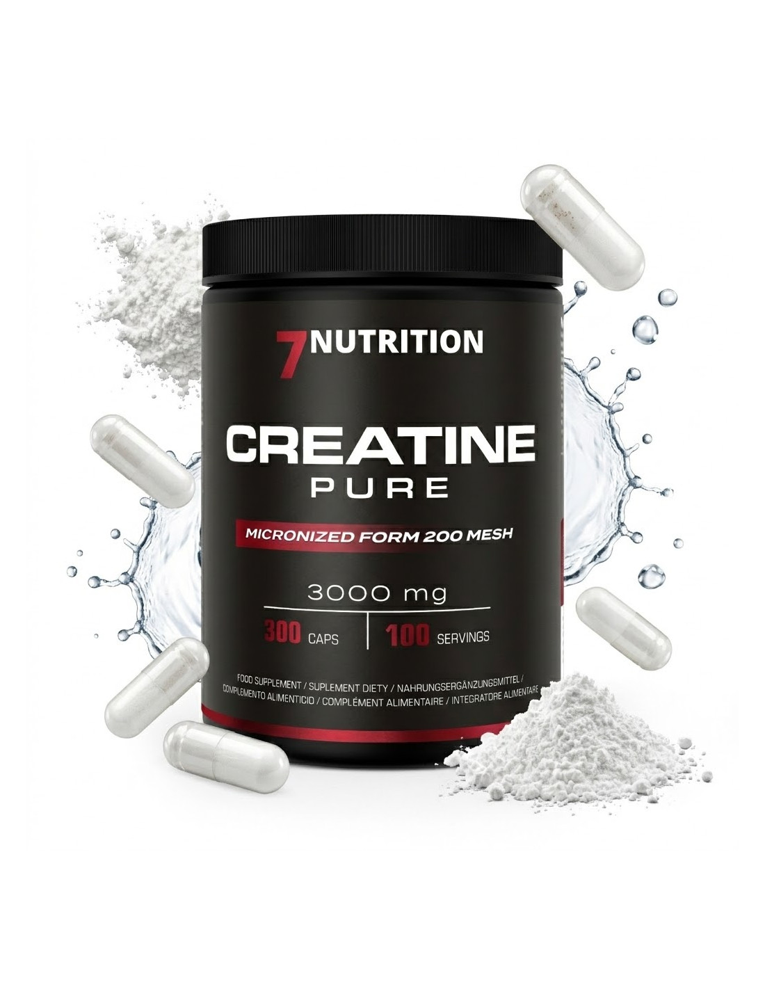 Creatine Pure 300Caps de 7Nutrition es un complemento alimenticio que aporta monohidrato de creatina micronizado en formato cápsulas.